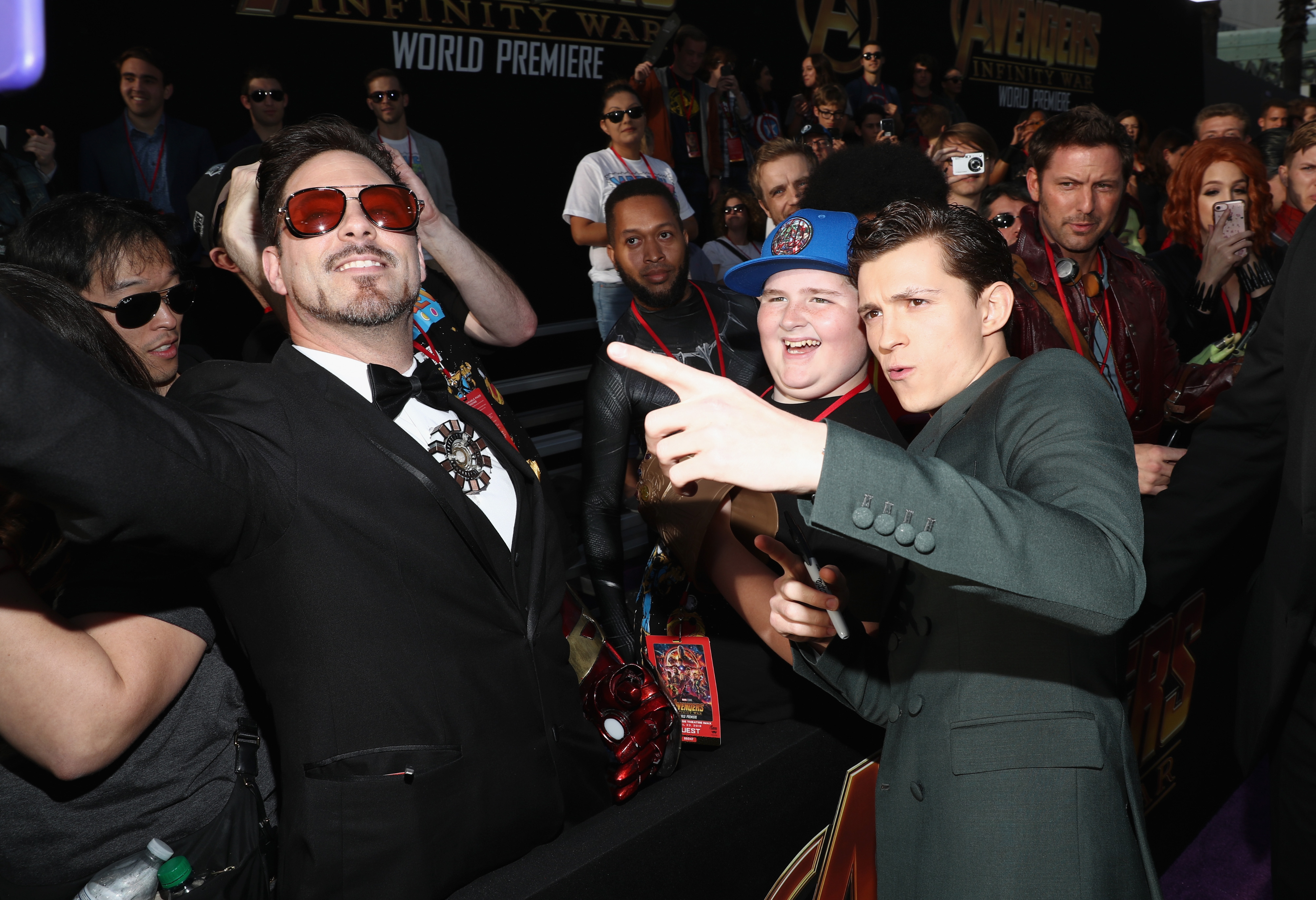 HOLLYWOOD, CA – APRIL 23: Actor Tom Holland (R) attends the Los Angeles Global Premiere for Marvel Studios Avengers: Infinity War on April 23, 2018 in Hollywood, California. (Photo by Rich Polk/Getty Images for Disney) *** Local Caption *** Tom Holland