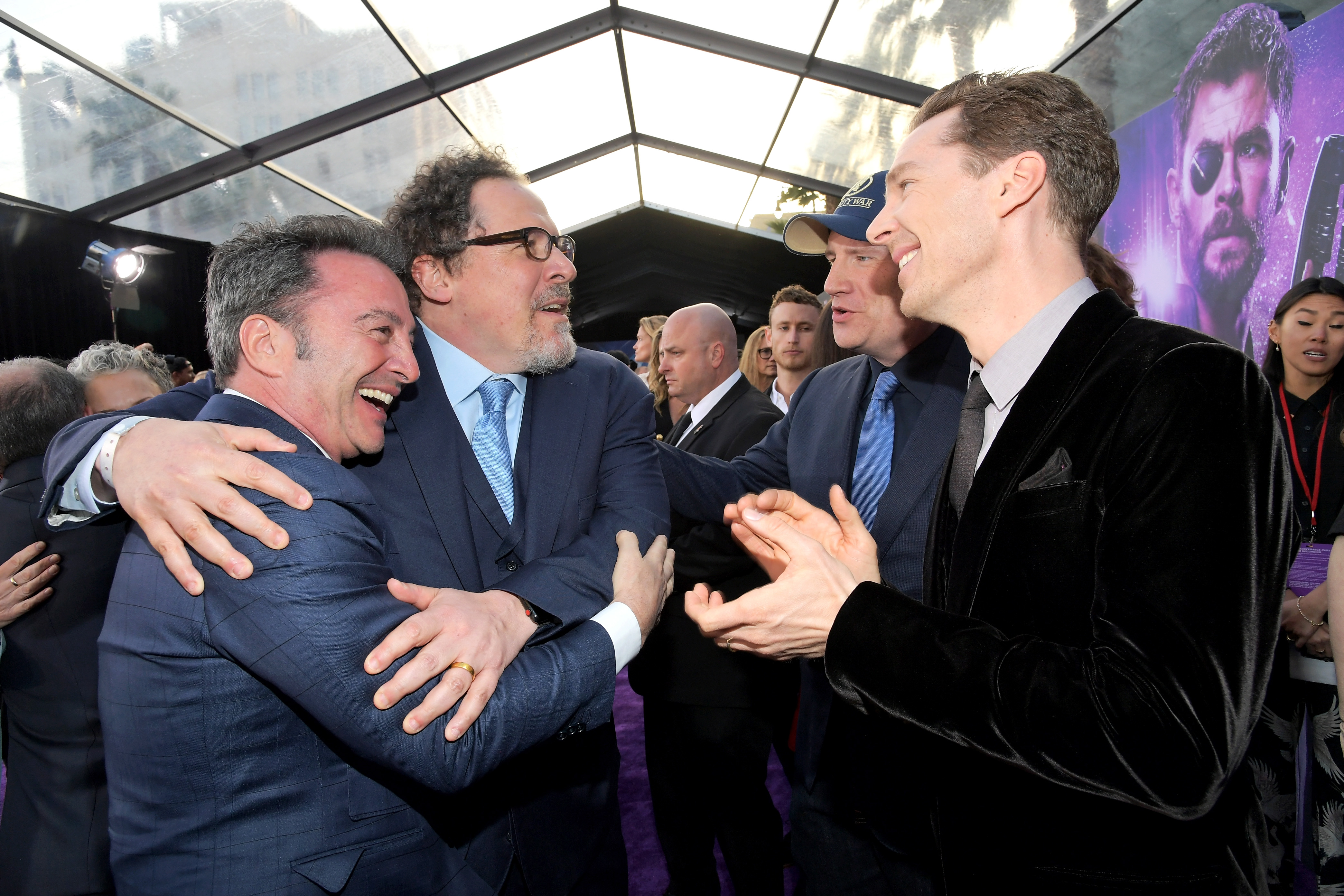 HOLLYWOOD, CA – APRIL 23: (L-R) Marvel Studios Co-President and producer Louis D’Esposito, Executive Producer Jon Favreau and actor Benedict Cumberbatch attend the Los Angeles Global Premiere for Marvel Studios Avengers: Infinity War on April 23, 2018 in Hollywood, California. (Photo by Charley Gallay/Getty Images for Disney) *** Local Caption *** Benedict Cumberbatch; Louis D’Esposito; Jon Favreau