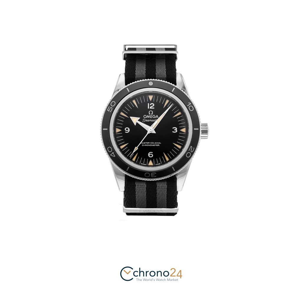 Aber auch in Spectre (2015) hatte Bond die Zeit im Blick. Hier trug er die Omega Seamaster 300, die ein Jahr später als „Limited Edition Spectre“ erschien. Von ihrer äußerlichen Beschaffenheit unterscheidet sie sich zu den anderen beiden Uhren. Zwar besteht das Gehäuse auch aus Stahl, aber das Material des Armbands ist aus dunklem Textil und kommt in einer schönen grau/schwarzen Streifenoptik daher. Das Gehäuse misst einen Durchmesser von 41 mm. Das Ziffernblatt ist ebenfalls schwarz und rundet das dunkle, aber elegante Gesamtdesign ab.