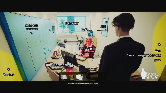 Allein die Idee ist schon eine halbe Ewigkeit her. Nun denn, im Jahr 2013 hatte Regisseur Erik Schiesko zum ersten Mal den Gedanken, so ein Projekt mit entsprechender Größenordnung aufzuziehen. Außerdem war es die Zeit, als sich so langsam aber sicher das Streaming entwickelte. Eigentlich eine neue Zeitrechnung, wenn man so möchte. Und dann noch die Vision von einem SpielFilm zu haben, kann größer nicht sein. So etwas nimmt ordentlich Zeit in Anspruch und wurde ab dem Jahr 2015 ordentlich promotet. Rückblickend kann man mit Sicherheit sagen, dass bei der ersten Premiere am 22. Januar 2016 noch genug Arbeit vor dem Team, aber ganz besonders vor Robert Baruck stand. Weil er stets der Mann war, der mehr als 20.000 Zeilen Code zu einem Filmprodukt verarbeiten musste. 350 Kulissen und über 550 richtige und falsche Antworten sind ein elementarer Bestandteil des SpielFilms. Und siehe da, nun haben wir das Endprodukt. Zu Beginn des Films sieht die Geschichte noch nicht ganz so ernst aus. Für den Protagonisten Lukas aber schon, der ein Vorstellungsgespräch zu absolvieren hat. Geführt wird das Gespräch von einem Personalleiter, der die Angelegenheit viel mehr wie ein Quiz führt. Kein Wunder, Darsteller Olaf Pöschk ist schließlich als Moderator beim Seitenquiz bekannt. Da wäre es fast fahrlässig gewesen, ihn nicht als quizzenden Personalleiter in seinem Element sein zu lassen. Beantwortet Lukas eine Frage falsch, kann man sich witzigen Einspielern erfreuen. Bei richtiger Beantwortung der Fragen schreitet das Gespräch und natürlich die Handlung voran.