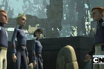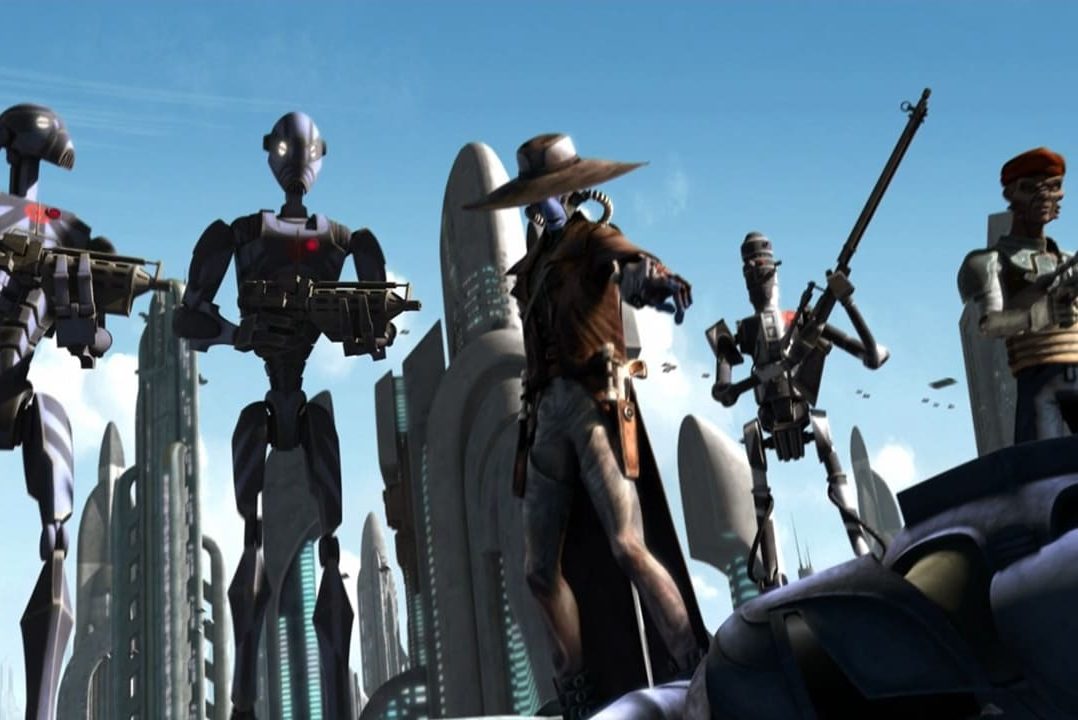Wir befinden uns wieder auf Corusant, wo ein Luftgleiter waghalsig durch die Lüfte saust. Am Steuer sitzt Cat Bane, der dazu Revolverheld Shahan und zwei Kommandodroiden bei sich hat. Damit ist klar, dass der Kopfgelder nichts Gutes im Schilde führt.